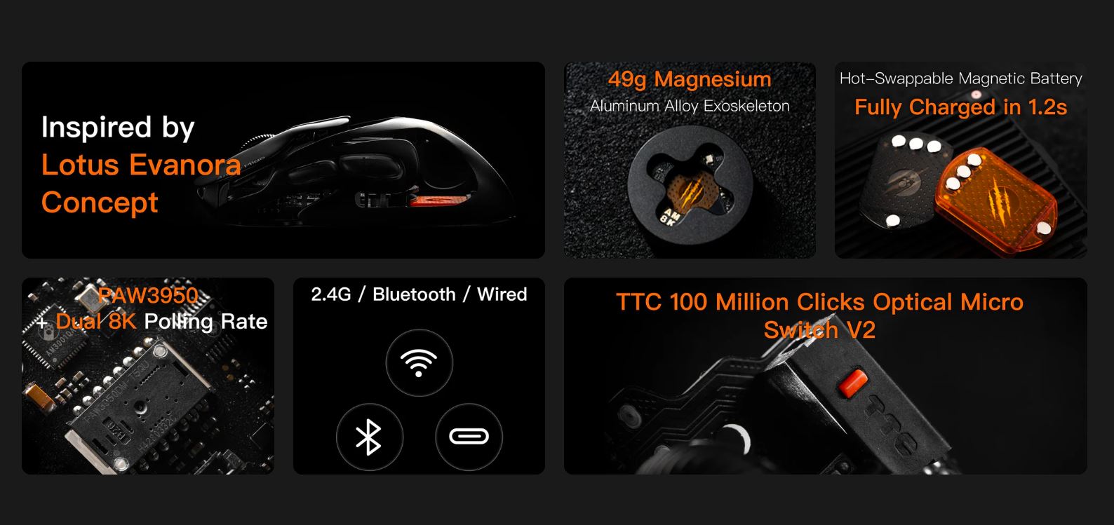 - Mắt đọc: PAW3950 + 8K Polling Rate