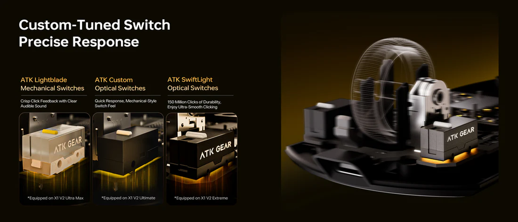 | Switch | ATK Lightblade Mechanical | ATK Custom Optical | ATK SwiftLight Optical |