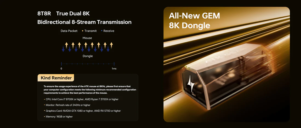 Với polling rate cao, ATK X1 V2 Ultramax mang lại độ trễ gần như bằng 0, giúp mọi thao tác được phản hồi ngay lập tức. Đây là yếu tố quyết định trong các pha combat đòi hỏi tốc độ và độ chính xác cao.