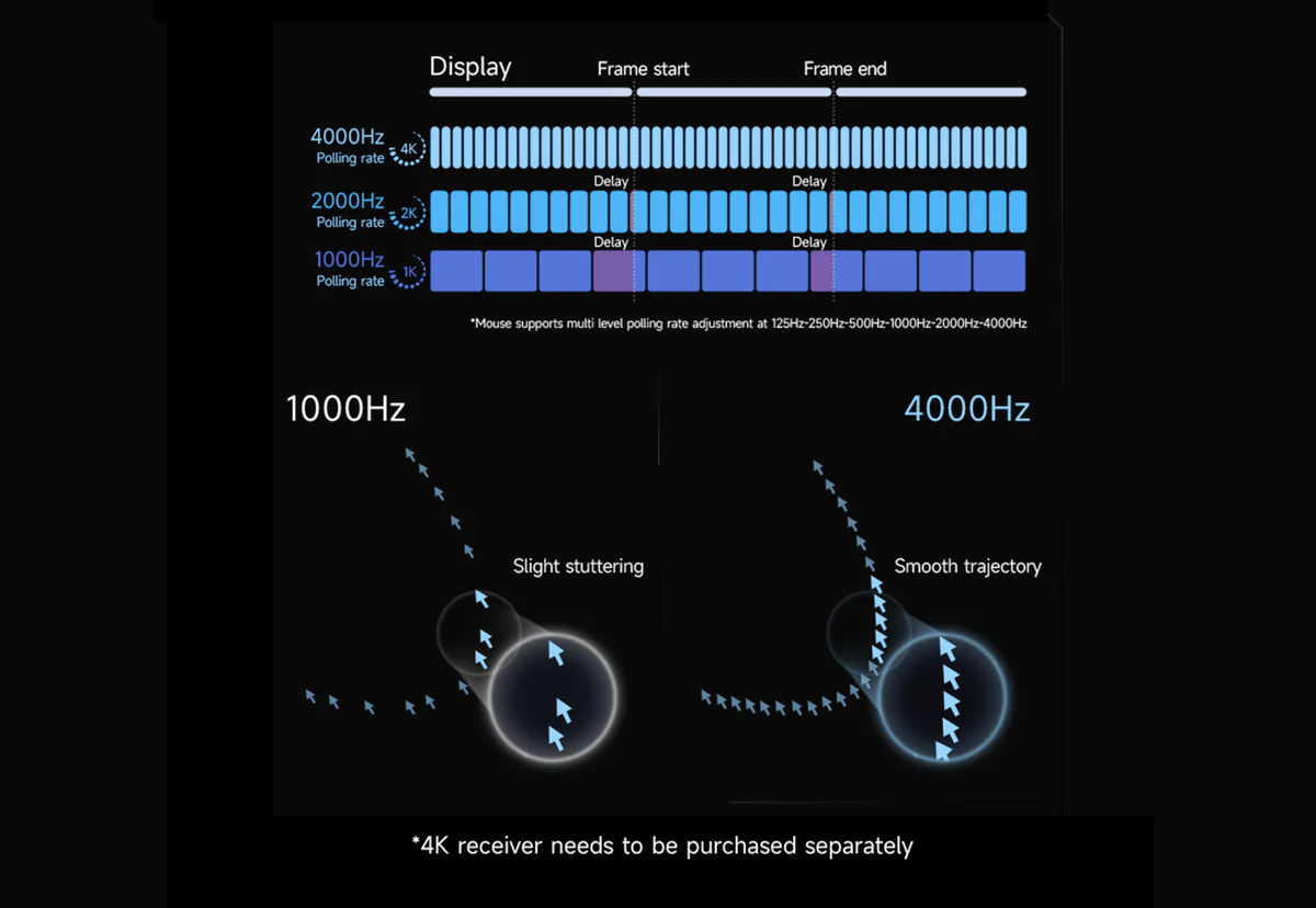 • Polling Rate 8000Hz – Hỗ trợ 8K Hz cho cả wired và wireless