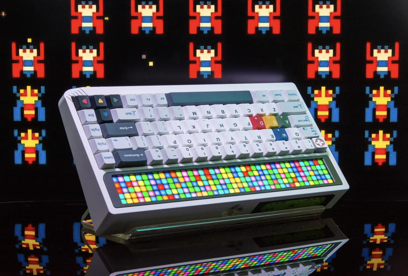 Không chỉ vậy, với chiếc màn hình pixel art hiển thị lại những hình ảnh trò chơi mà chỉ có ở trong ký ước của người dùng, và cổng USB của em Bàn Phím Angry Miao AM RGB 65 này cũng được làm theo nút D-Pad