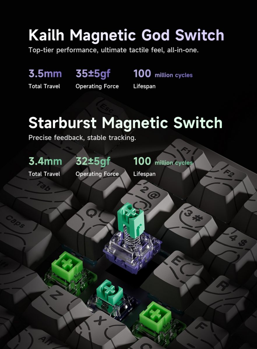 • Kailh Magnetic God Switch – Công tắc từ tính hiệu năng cao, phản hồi nhanh và ổn định