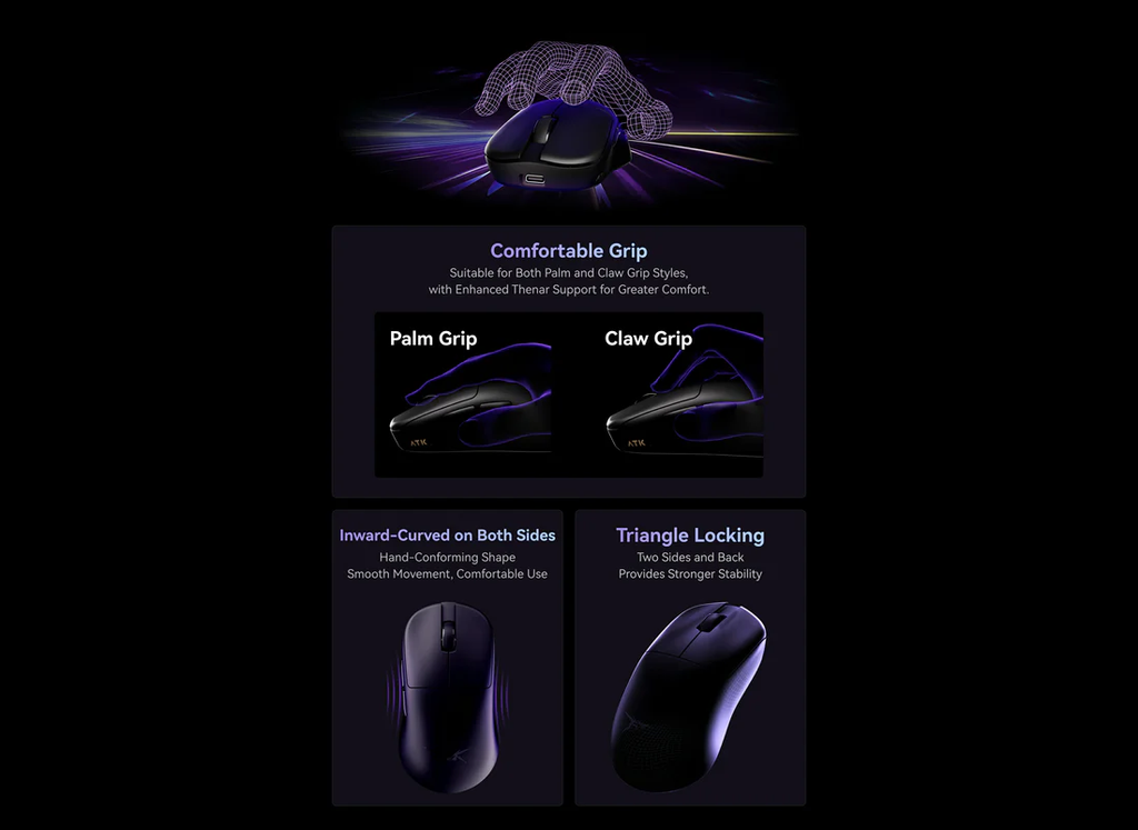 ATK Blazing Sky U2 Pro được phát triển với form dáng lấy cảm hứng từ dòng Zowie U2 nổi tiếng, mang lại sự cân bằng hoàn hảo giữa tính đối xứng và công thái học.