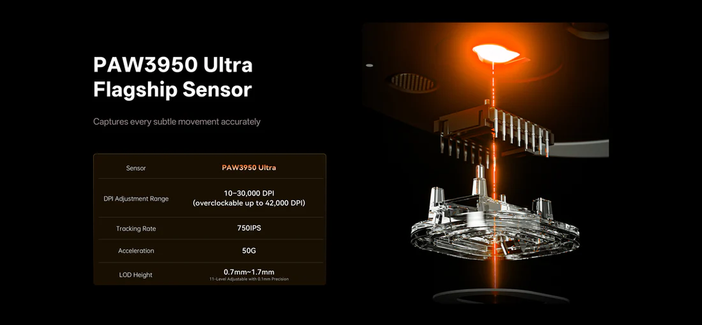 Nền tảng phần cứng mạnh mẽ giúp chuột hoạt động ổn định ngay cả khi sử dụng ở tần số quét cao.