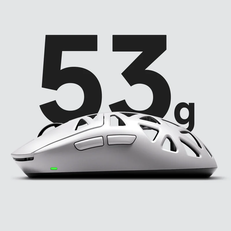 Nhẹ hơn và bền hơn so với chuột nhựa truyền thống, chỉ nặng 53g mang lại khả năng điều khiển dễ dàng và thoải mái ngay cả trong những phiên chơi game kéo dài.