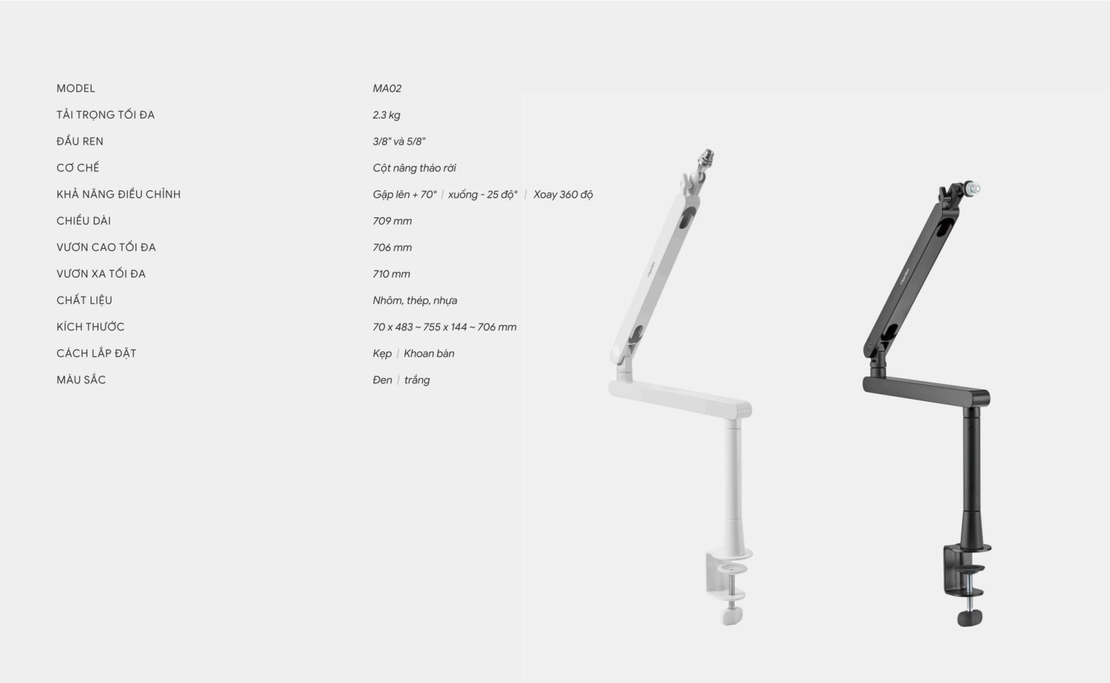 - Tên sản phẩm: Giá đỡ Microphone HyperWork MA-02