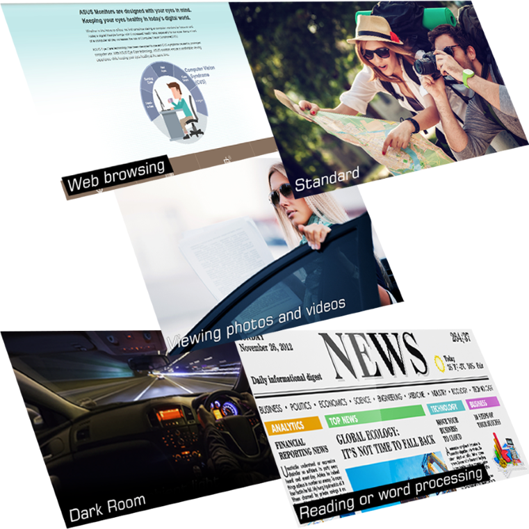 Đó là thời gian để nói lời tạm biệt với những đôi mắt mệt mỏi, căng thẳng. ZenScreen MB16AC được trang bị công nghệ ASUS Flicker được chứng nhận bởi TÜV Rheinland để giảm tiếng rung cho trải nghiệm xem thoải mái. Công nghệ này giúp giảm thiểu các trường hợp mỏi mắt và các căn bệnh nguy hiểm khác, đặc biệt là khi bạn dành nhiều thời gian, vô số giờ trước màn hình hiển thị các video yêu thích.