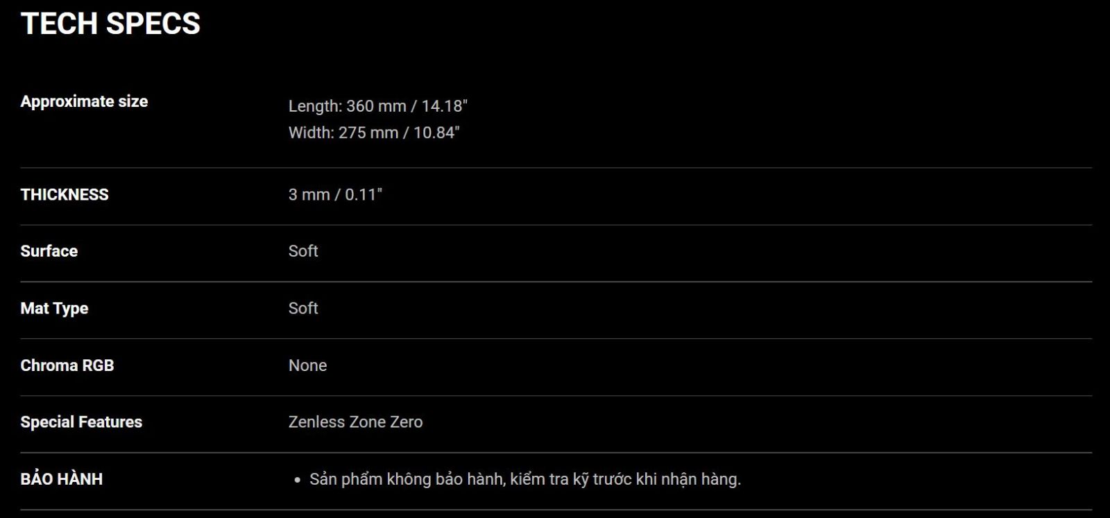 Độ dày: 3 mm/ 0.11"