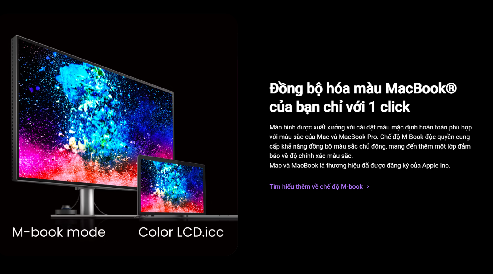 - HDR10 - 1,07 tỷ màu - Đồng bộ hoá màu Macbook