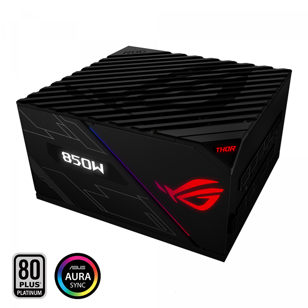 The ROG Thor 850W Platinum là dòng nguồn dành cho các tín đồ đam mê PC nhưng người đòi hỏi sự xuất sắc về mặt thẩm mỹ và sự hoàn hảo về hiệu suất. PSU đầu tiên của chúng tôi có rất nhiều ý tưởng sáng tạo, bao gồm chiếu sáng Aura Sync RGB, bảng thông tin OLED tích hợp, quạt Wing-Blade chống bụi và tản nhiệt lớn cho phép hoạt động 0dB ở mức công suất cao hơn so với thiết kế thông thường. Nó cũng tích hợp các thành phần bền, đáng tin cậy, như tụ điện do Nhật Bản sản xuất, để đạt được chứng nhận hiệu quả 80 PLUS® Platinum.